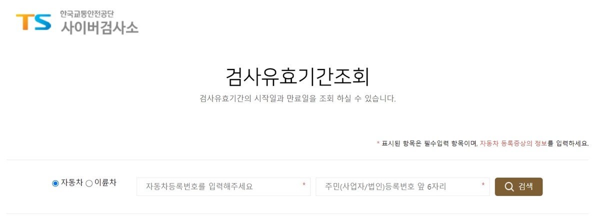 여기서 차량번호와 주민등록번호 또는 사업자등록번호를 입력하면 바로 검사기간을 확인할 수 있어요.